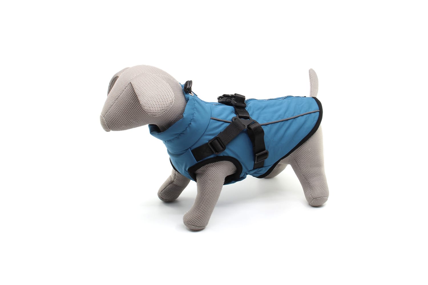 Aero je praktická zimní bunda pro každodenní venčení i výlety. Odolný svrchní materiál chrání proti větru a mrholení. Vysoký límec se stahováním pomáhá upravit bundu v oblasti krku. Bunda se pohodlně obléká a zapíná díky zipu na zádech, který usnadňuje manipulaci. Bunda je navržena s integrovaným postrojem kolem hrudníku a přes záda snadno dotáhnete pomocí přezek, takže vše sedí na místě. vodítko jednoduše připnete přímo na kroužky na hřbetě. Širší střih je vhodný hlavně pro pejsky s  širokým hrudníkem. Reflexní pruhy zvyšují bezpečnost při venčení za šera.