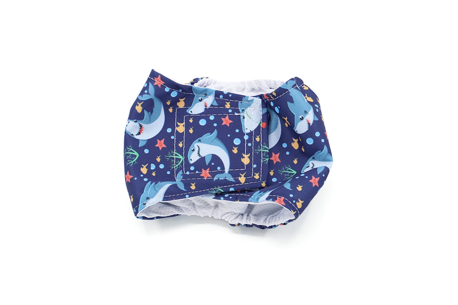 3. Aplikace pásu: Nasaďte pás kolem slabin vašeho psa tak, aby pokryl jeho genitálie, a zajistěte ho pomocí suchých zipů na pásu.