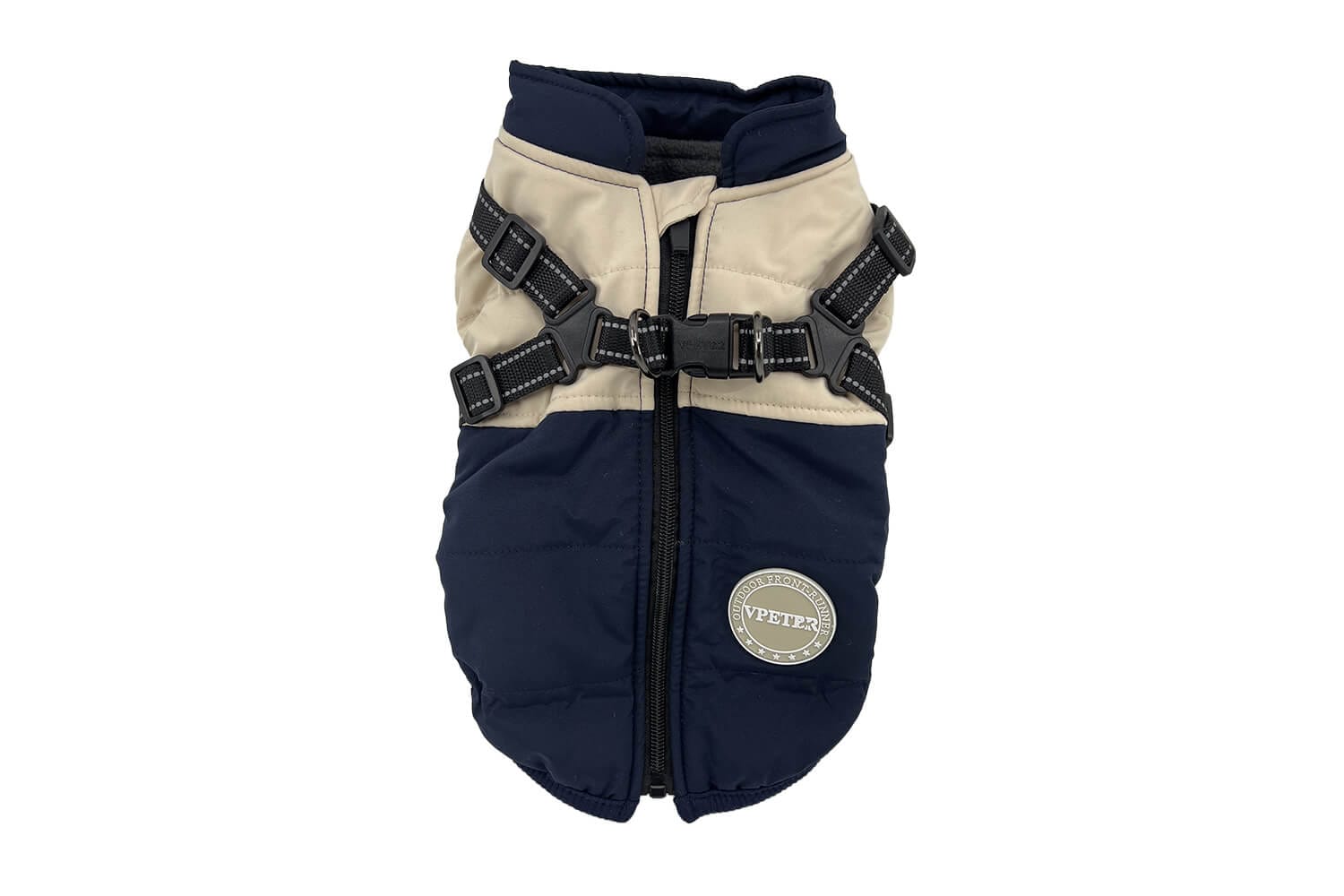 City-warm zimní bunda pro psa s postrojem Barva: Tmavě modrá, Délka zad (cm): 41, Obvod hrudníku: 46 – 52 cm