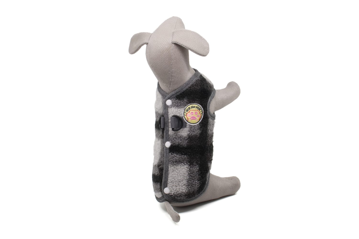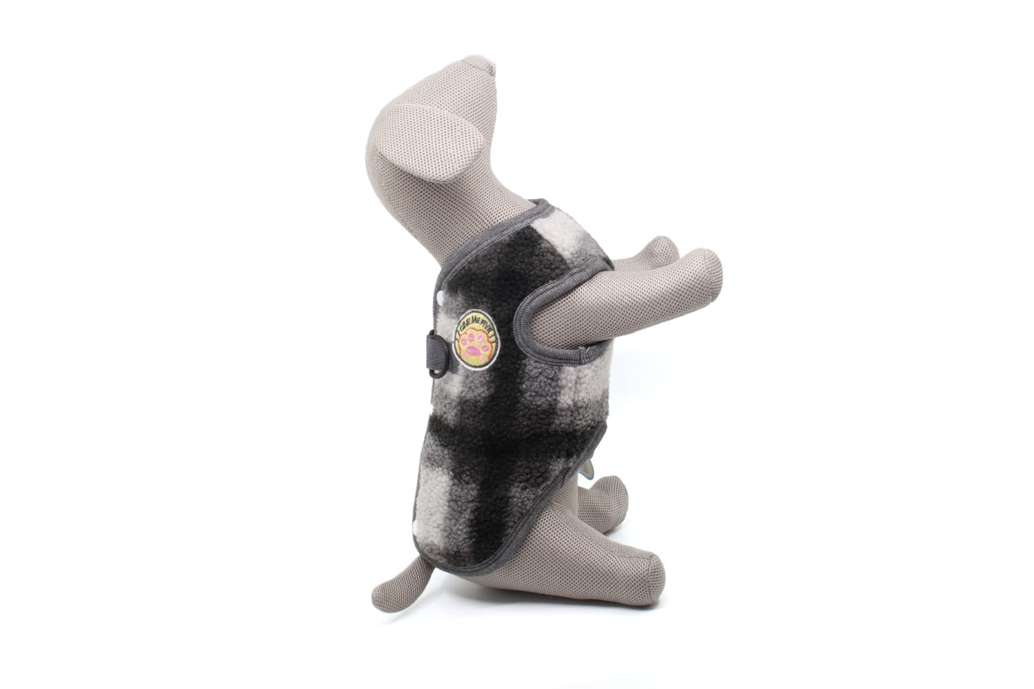 Na zádech najdete dvojité plastové kroužky – kdykoliv tak můžete připnout vodítko a vyrazit ven bez obojku.