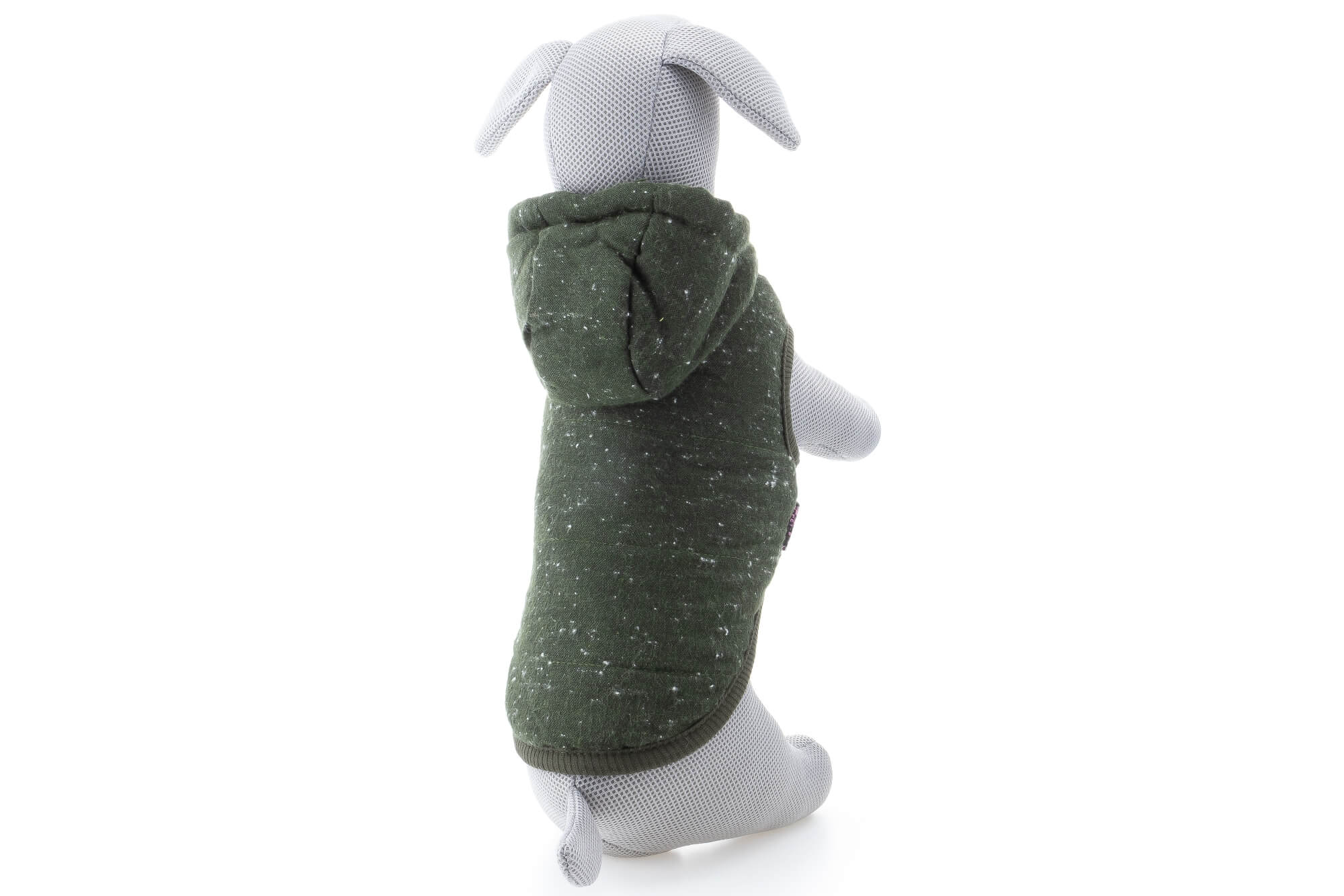 Tato tmavě zelená sportovní psí bunda nadchne nejednoho čtyřnohého chlupáče ale i páníčka, jak svým provedením, tak jejími vlastnostmi. Díky pružnosti materiálu a spodní vrstvě hřejivého fleecu bude vašemu pejskovi příjemně teplo a zároveň se bude cítit pohodlně. Navíc bude psí obleček chránit vašeho pejska před ušpiněním, je proto vhodný i pro plemena s delšími chlupy. Bunda pro psa disponuje kapucí, která ochrání hlavičku i ouška. Je snadná na údržbu a v případě potřeby lze vyprat v pračce na 30 °C.