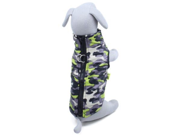 Knox obleček pro psa malého a středního vzrůstu. Polyesterový materiál vyplněný vatou poskytne hřejivou vrstvu každému zmrzlému kožíšku a sníží tím riziko z prochladnutí mazlíčka. Zároveň díky nepromokavým vlastnostem ochrání psí srst před vlhkem, deštěm a sněhem. Svým střihem zakrývá bříško a hřbet pejska a neomezuje mazlíčka v pohybu či během jeh potřeby. Psí obleček tak využijete na jaře, podzim i zimě. Výhoda spočívá také v možnosti připnutí vodítka k oblečku pomocí přišitého poutka. Jednoduché a praktické zapínání zajistí zip nacházející se na oblečku. Maskáčový vzhled podtrhnutý funkčním límcem si jednoduše zamilujete! Nenáročná údržba je velmi příjemným benefitem psího oblečku.