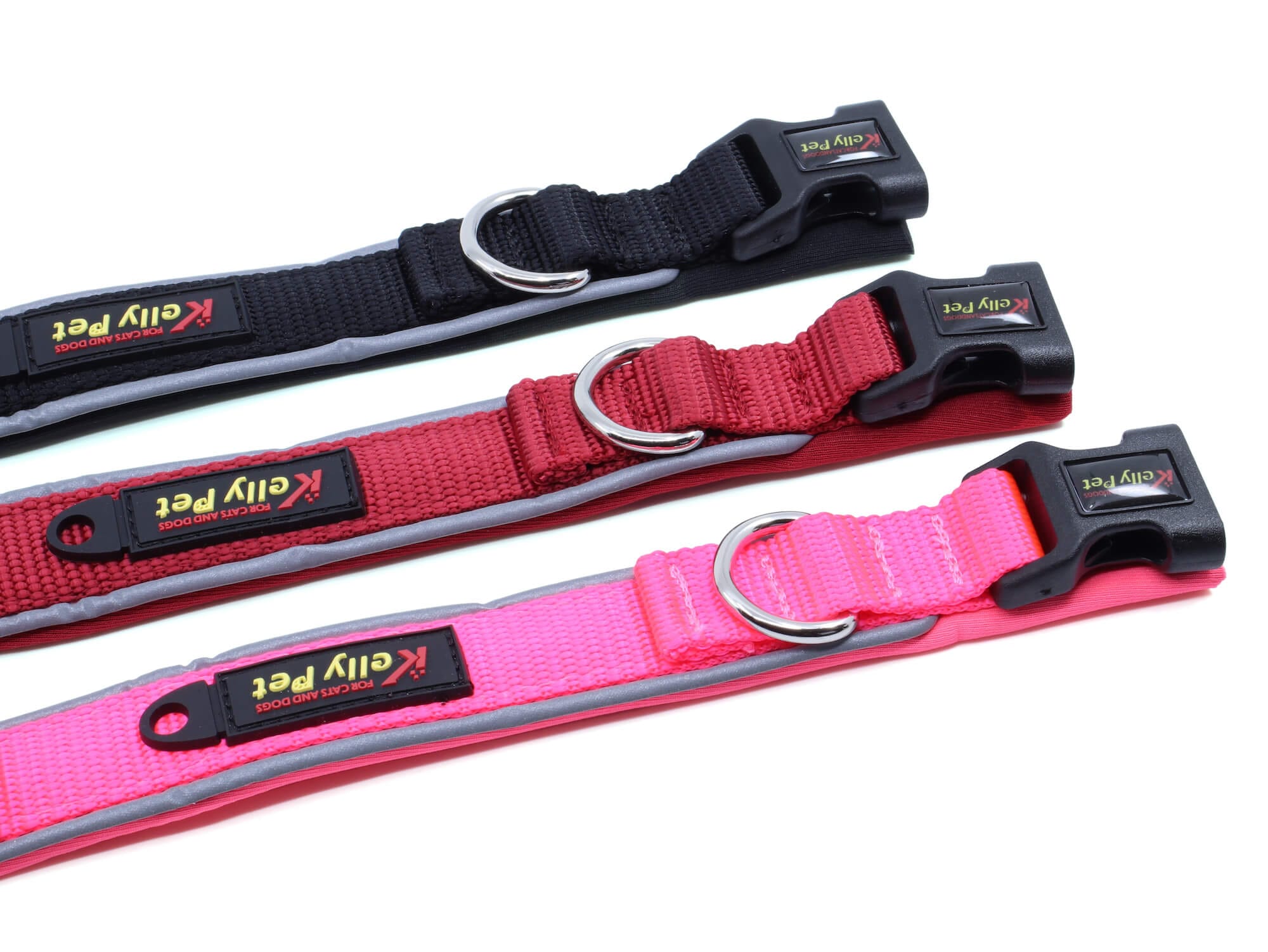 Obojek pro psy středního a velkého vzrůstu s podšívkou do chladného období. Dominuje možnosti regulace délky dle potřeb mazlíčků, tudíž se skvěle přizpůsobí na míru. Disponuje zapnutím na plastovou přezku a na suchý zip, jimž lze nastavit požadovanou velikost. Psí obojek s podšívkou je ideální pro psíky s obvodem krku v rozmezí 33 – 58 cm. Obojek ušitý z kvalitního, pevného a odolného nylonového materiálu. Díky podšití oplývá také hřejivými vlastnostmi. Po celém obvodu obojku se nachází reflexní pruh zvyšující viditelnost v tmavých podmínkách. Psí obojek připojíte k vodítku spojením kovového poutka a karabiny.