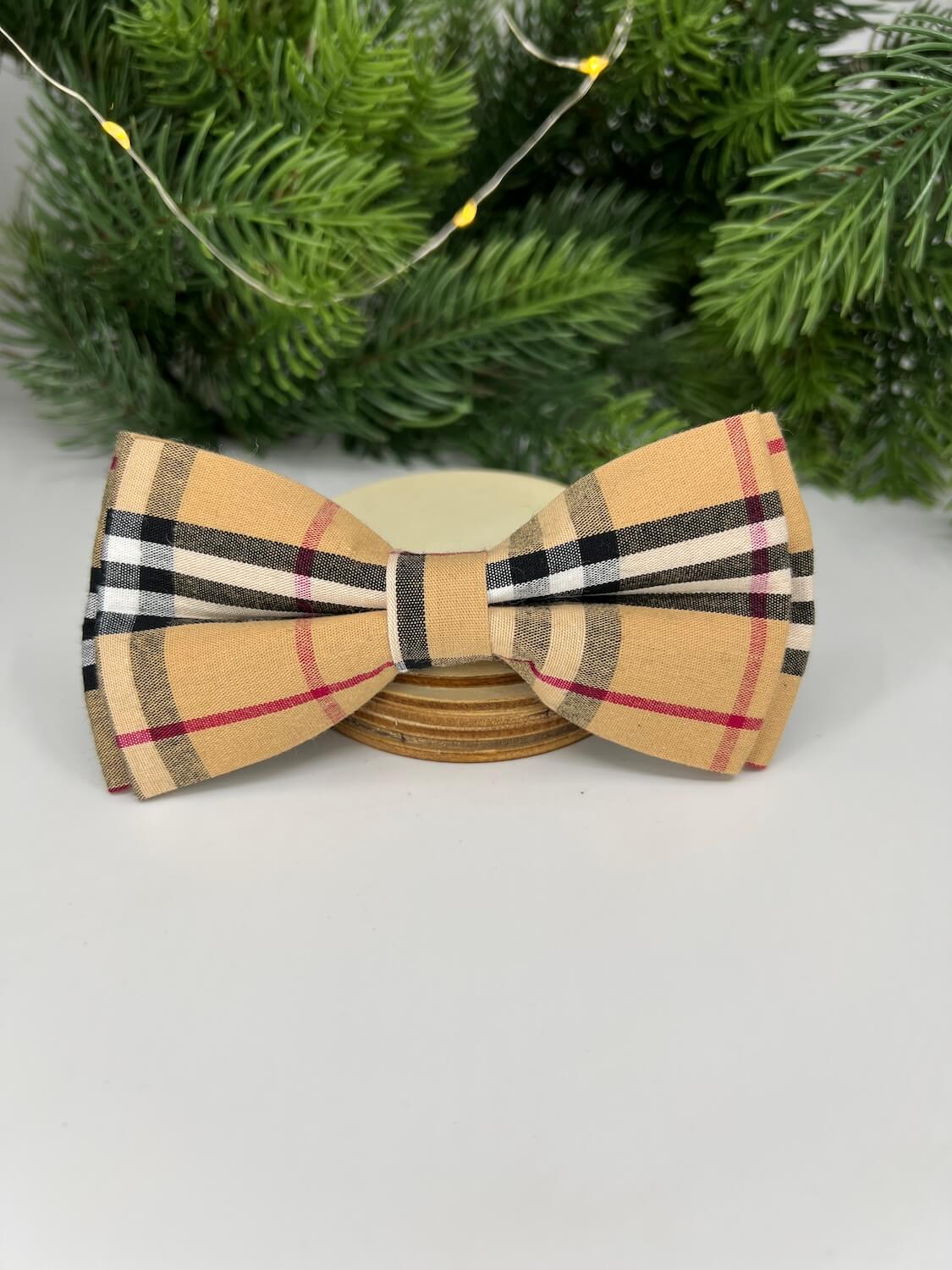 Louis károvaný motýlek pro psa na obojek Barva: Béžová, Rozměr (cm): 5×11 cm