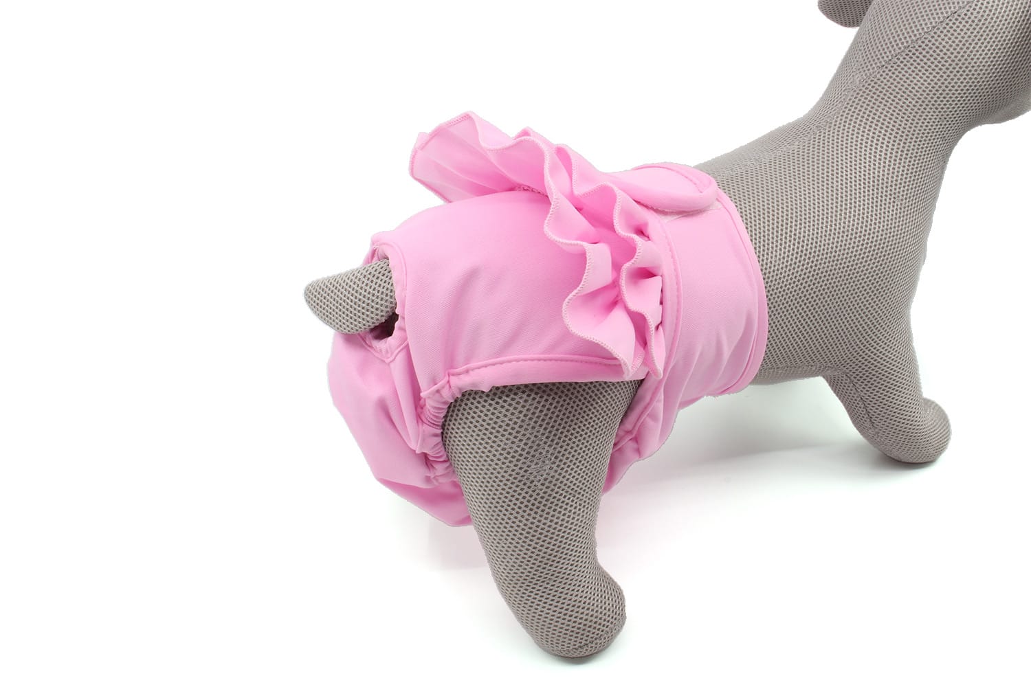 - Zapínání: Otočte kalhotky kolem boků psa a zapněte je na druhé straně, buď ve slabinách nebo v pase.