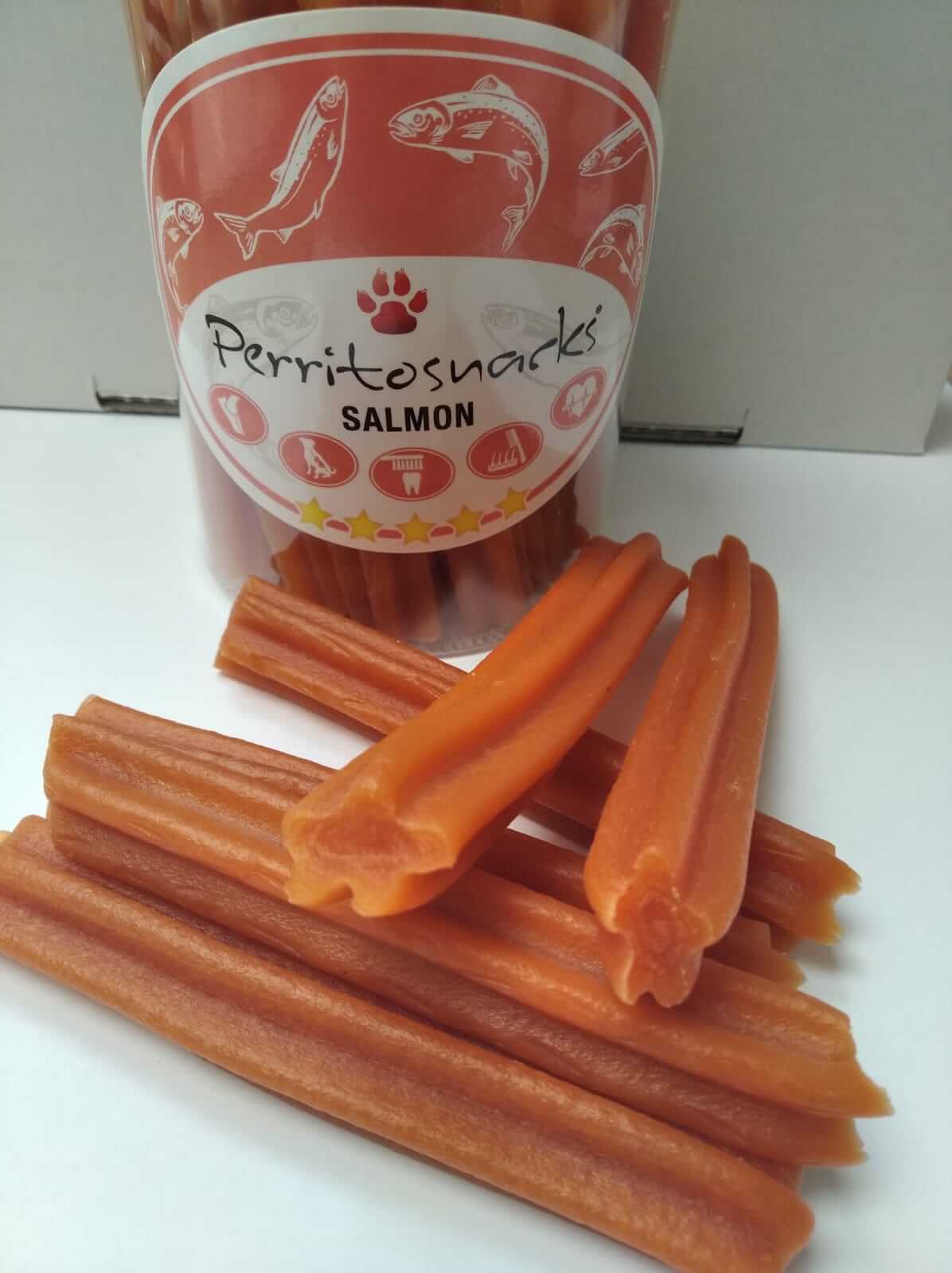 Lahodné pamlsky z oblíbeného lososa ve formě dentálních tyčinek. Posilují žvýkací svalstvo a čistí zubní plak. Ideální pro malé, střední a velká plemena. Doplňkové krmivo pro psy obsahuje málo tuku a hodně bílkovin. 100% přírodní pamlsky jsou sušené horkým vzduchem. Není určeno pro lidskou spotřebu. Vyrobené v Česku.