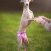 - Pravidelná kontrola: Pravidelně kontrolujte, zda kalhotky nezpůsobují pejskovi nepohodlí nebo podráždění. Vyhnete se tak tomu, že si bude chtít pejsek kalhotky sundat.