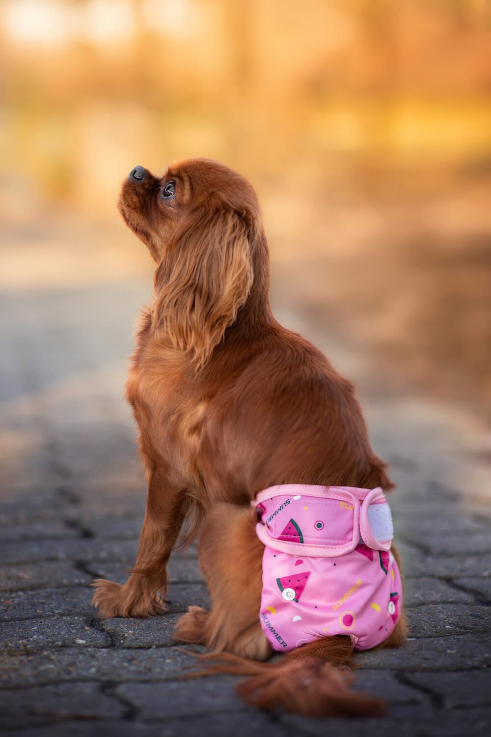 • Pravidelná kontrola: Pravidelně kontrolujte, zda kalhotky nezpůsobují pejskovi nepohodlí nebo podráždění. Vyhnete se tak tomu, že si bude chtít pejsek kalhotky sundat.