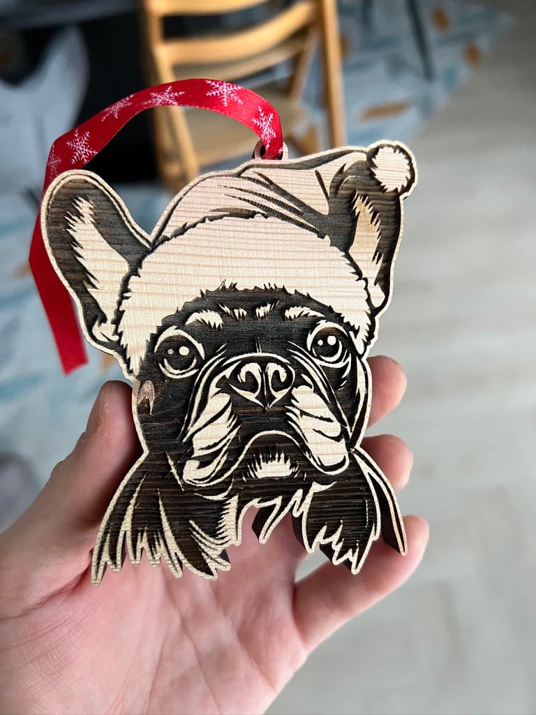 Vneste na svůj stromeček kouzlo Vánoc a lásku ke psům! Tato kvalitní ozdoba je vyrobená z masivního dřeva o tloušťce 1 cm, takže působí bytelně, prémiově a na větvi krásně vynikne.