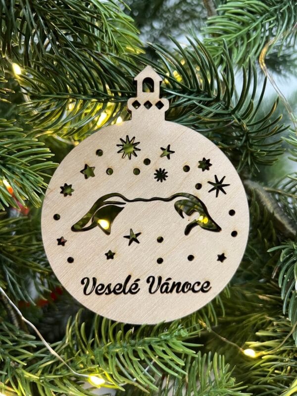 Připravte se na kouzelné Vánoce s originální vánoční baňkou s motivem chrta. Tato dřevěná vánoční ozdoba na stromeček je ideální volbou pro všechny milovníky tohoto elegantního a rychlého plemene. Chrti jsou symbolem ladnosti, elegance a věrnosti – a přesně tyto vlastnosti přinese i do vaší vánoční výzdoby.