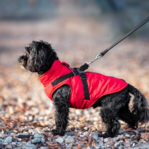 Ronald zimní bunda pro psa s postrojem Barva: Červená, Délka zad (cm): 32, Obvod hrudníku: 44 – 48 cm